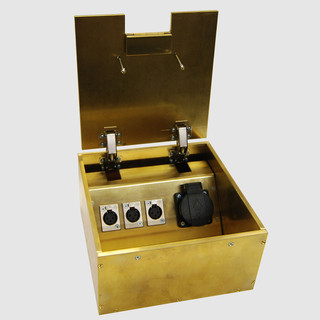 Bodeneinbautank aus massivem Messing gefertigt, Deckelklappe mit Öffnungsscharnieren und Kabelauslaß.